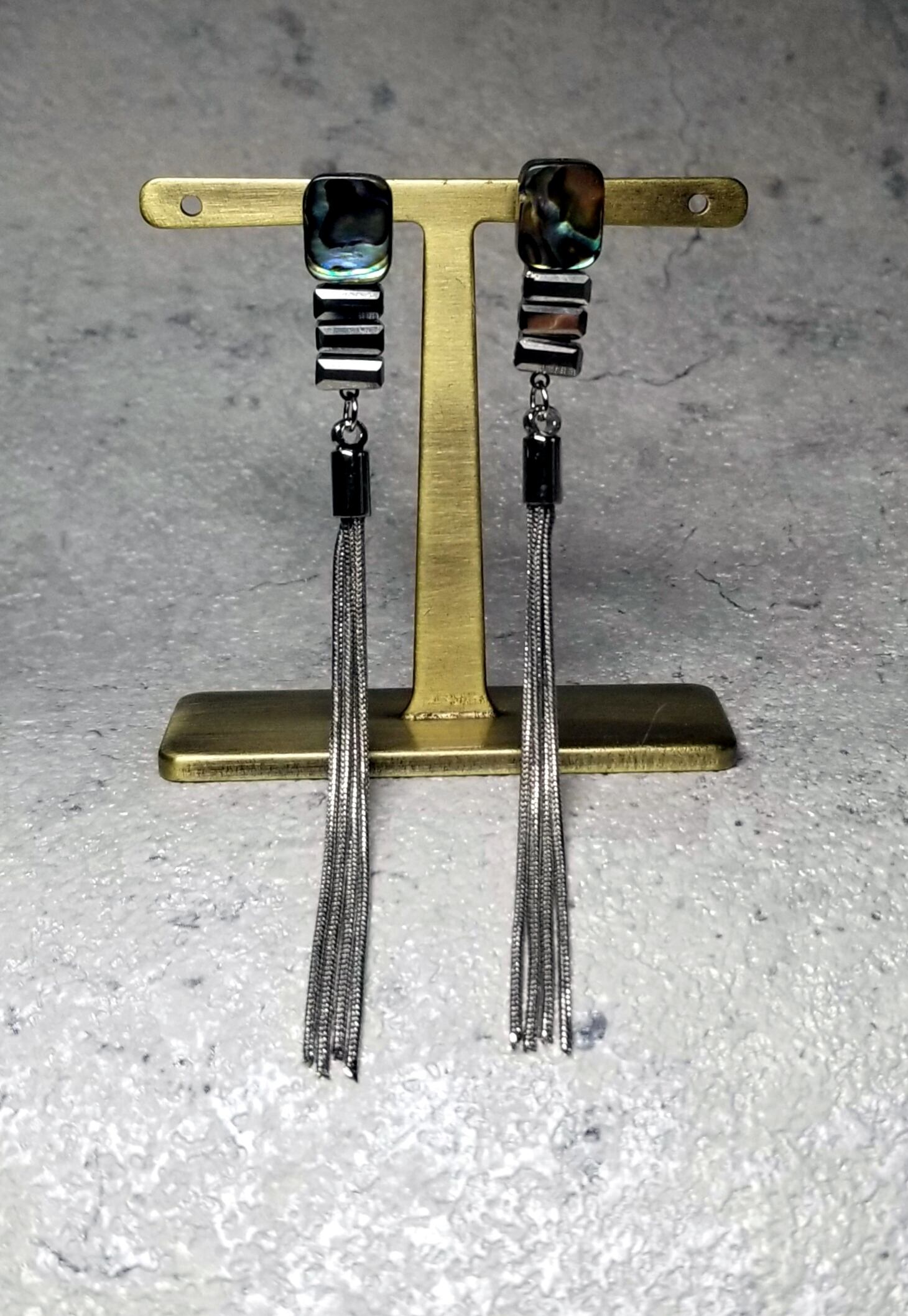 アバロンシェルとシルバーのフリンジを使った、人気のデザインです。